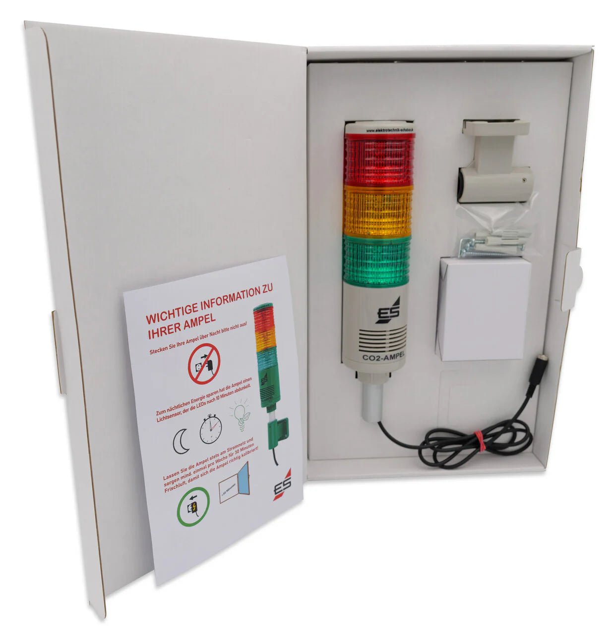 Das optische Warngerät detektiert erhöhte CO2-Belastungen in Innenräumen, in denen sich regelmäßig viele Menschen aufhalten. Typischerweise sind das Produktionsstätte, Werkstatt, Großraumbüros und ganz allgemein alle Innenräume. 1400 ppm CO2 in der Raumluft gelten bereits als "sehr schlechte Luft", die maximale Arbeitsplatz-Konzentration MAK liegt in Deutschland bei 5000 ppm, die CO2-Ampel "factory" erinnert daher mit ihrem gelben Licht ab 1400 ppm zum ausgiebigen Zug-Lüften des Raumes. Wer dauerhaft schlechte und verbrauchte Luft einatmen muss, wird müde und verliert deutlich an Leistungs- und Konzentrationsfähigkeit. Dies macht sich insbesondere beim Lernen und Arbeiten negativ bemerkbar. Auch das Immunsystem wird geschwächt, bzw. bei immer frischer Luft spürbar gestärkt und stabilisiert, was sich z.B. in Großraumbüros mglw. sogar an den Krankheitstagen über das Jahr ablesen lässt. Abhilfe gegen schlechte Luft schafft nur regelmäßiges Zug-Lüften, das oft und gerne vergessen wird. Genau hier setzt die CO2-Ampel an. Nicht nur, dass sie bei stark erhöhten schädlichen Konzentrationen warnt, vielmehr erzieht sie dazu, rechtzeitig zu lüften, noch bevor in der höchsten Warnstufe der Warnton ertönt.