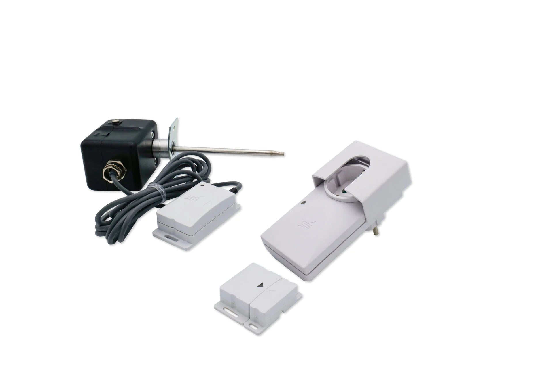 Der integrierte Fenstersender erlaubt den Betrieb der Abluftanlage nur bei geöffnetem Fenster – es sei denn, der Ofen ist kalt, dann wird automatisch freigegeben. Diese Doppellogik (Temperatur + Fensterkontakt) erhöht die Sicherheit und Bedienfreundlichkeit erheblich.
