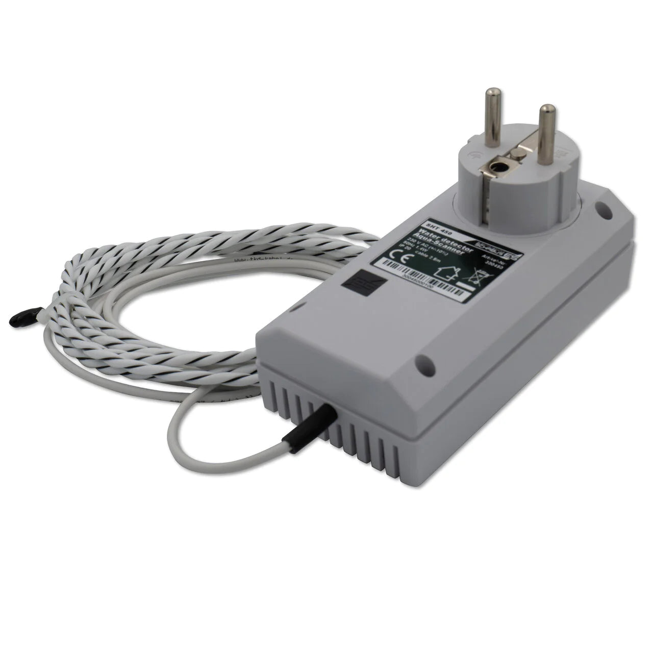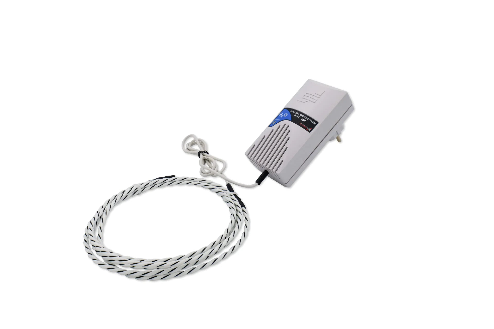 Der SHT 450 wird einfach in eine Steckdose gesteckt, das Sensorkabel im zu überwachenden Bereich ausgelegt – fertig! Der integrierte Signalgeber schlägt sofort Alarm, sobald das Kabel Feuchtigkeit erkennt.