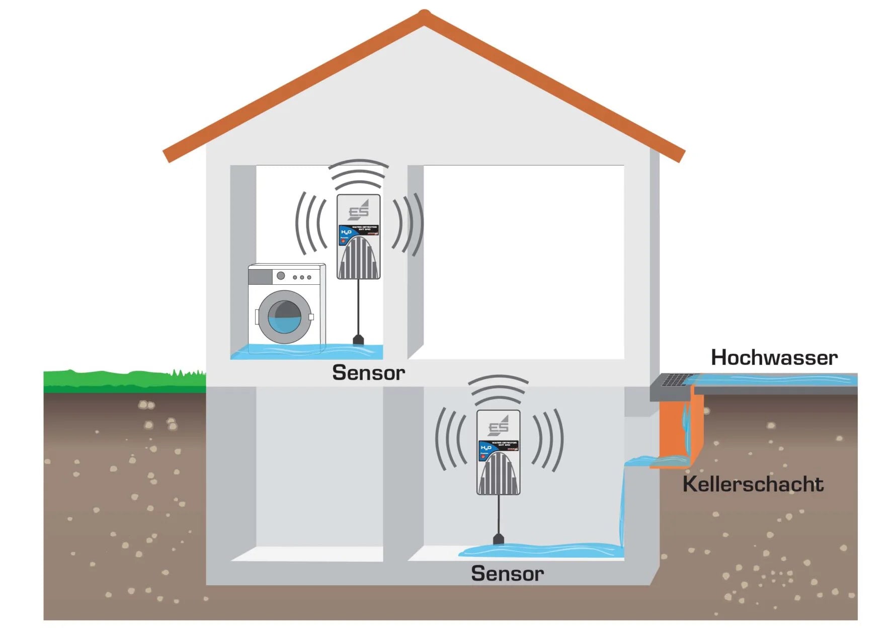 Der Wassermelder wird in eine freie Steckdose gesteckt, der Sensor in Bodennähe platziert – fertig.