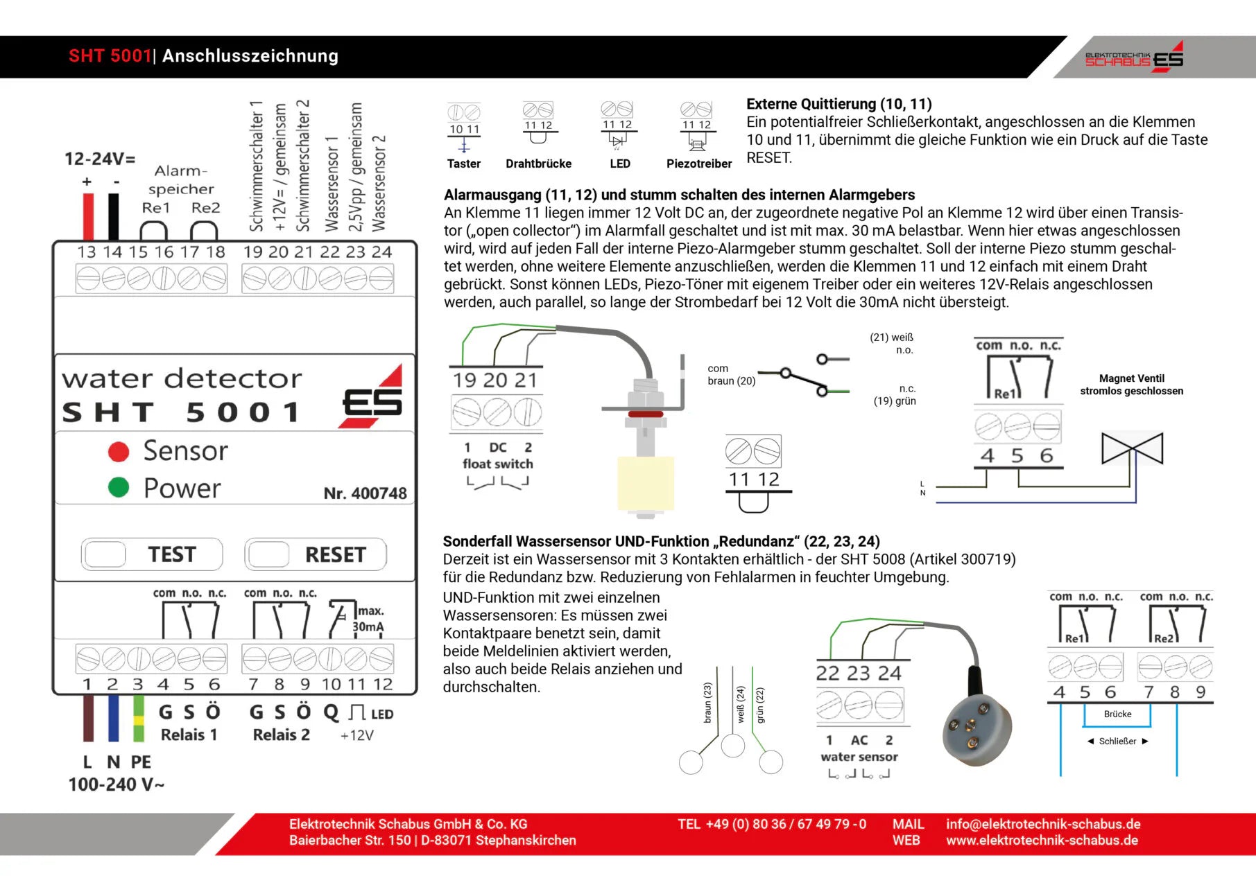 Dank klarer Trennung der Eingangstypen erlaubt der SHT 5001 deutlich lÀngere LeitungslÀngen als andere Wassermelder: