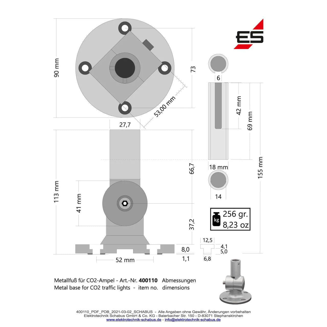 Vollständige Details anzeigenStandfuß für CO2-Ampeln zu Montage auf horizontalen Flächen