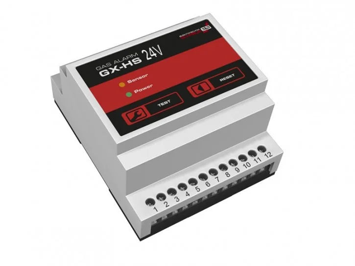Funktionsbeschreibung: Bei allen gasbetriebenen Geräten besteht die Möglichkeit, dass gefährliches Gas austritt. Sobald der Gasmelder GX-HS solche Gase detektiert, unterbricht er automatisch die Stromversorgung und optional auch die Gasversorgung durch die Gasleitung. Je nach Art des angeschlossenen Sensors detektiert das Gerät Stadt- und Erdgas (Methan/Butan), Kühl- und Kältemittel oder Kohlendioxid, das im Gastronomiebereich eingesetzt wird oder aus der Atemluft stammt.