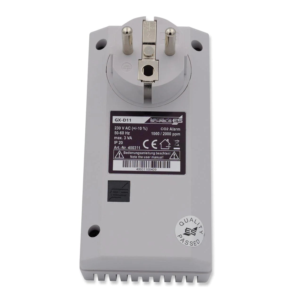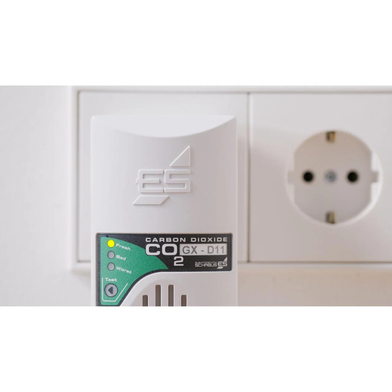 Die CO₂-Ampel GX-D11 ist ein kompaktes Warngerät für den mobilen Einsatz, das einfach in eine freie Steckdose gesteckt wird. Nach einer kurzen Aufwärmphase von etwa 3 Minuten zeigt das Gerät die aktuelle CO₂-Konzentration an. Die Anzeige erfolgt über ein dreistufiges LED-System (grün, gelb, rot) und wird durch eine dezente akustische Unterstützung ergänzt, die bei Bedarf stumm geschaltet werden kann.