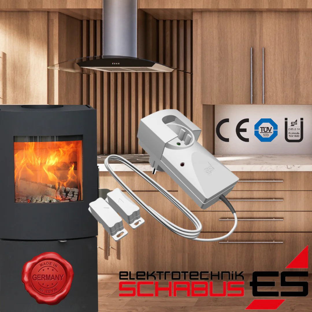 Der Zwischenstecker-Empfänger wird einfach zwischen Steckdose und Netzstecker der Dunstabzugshaube platziert. Sobald das Fenster geöffnet ist, gibt er automatisch die Stromzufuhr für den Lüfter frei. Eine Netzstecker-Sicherung verhindert unbeabsichtigtes Umstecken.
