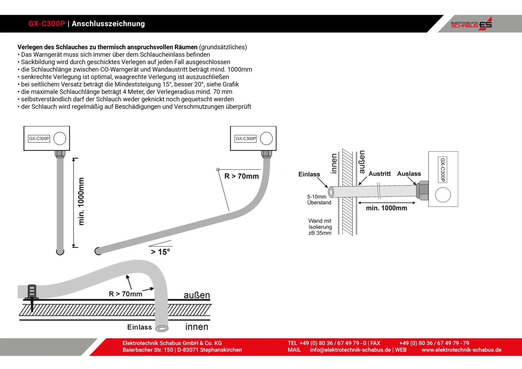 Da der GX-C300P häufig in industriellen oder spezialisierten Umgebungen eingesetzt wird, können die werkseitig festgelegten Alarmstufen und Verzögerungszeiten auf Wunsch individuell angepasst werden. Während die Standardwerte optimal auf Wohnräume oder wohnungsähnliche Bereiche ausgelegt sind, haben viele Anwender eigene Anforderungen an das CO-Warnsystem. Elektrotechnik Schabus bietet daher einen umfassenden Programmier-Service an, bei dem das Gerät exakt auf die gewünschten Parameter abgestimmt wird. Kunden erhalten hierzu eine ausführliche Beratung sowie einen Test- und Prüfbericht, der die angepassten Einstellungen dokumentiert. Diese Möglichkeit der Individualisierung steht auch für alle weiteren Schabus C300-Warngeräte zur Verfügung.