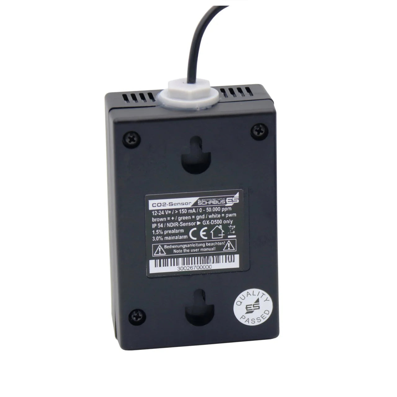 Der CO₂-Warnmelder GX-D500 ist ein prof. Warngerät mit fest eingestellten Alarmschwellen bei 1,5% CO₂ für Voralarm und 3,0% CO₂ für Hauptalarm.