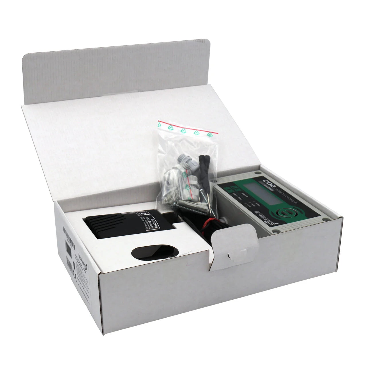 Ein großes beleuchtetes 2×16 Zeichen Display informiert ständig über den aktuell gemessenen CO₂-Wert und beim Durchblättern mit der SERVICE-Taste über weitere Statusmeldungen des Gerätes. So werden die Temperaturen im Inneren des Gerätes überwacht, die Alarme gezählt, bei technischen Störungen ein Fehler-Code angezeigt oder auch die CO₂-Konzentration beim letzten Alarm in ppm mitgeschrieben.